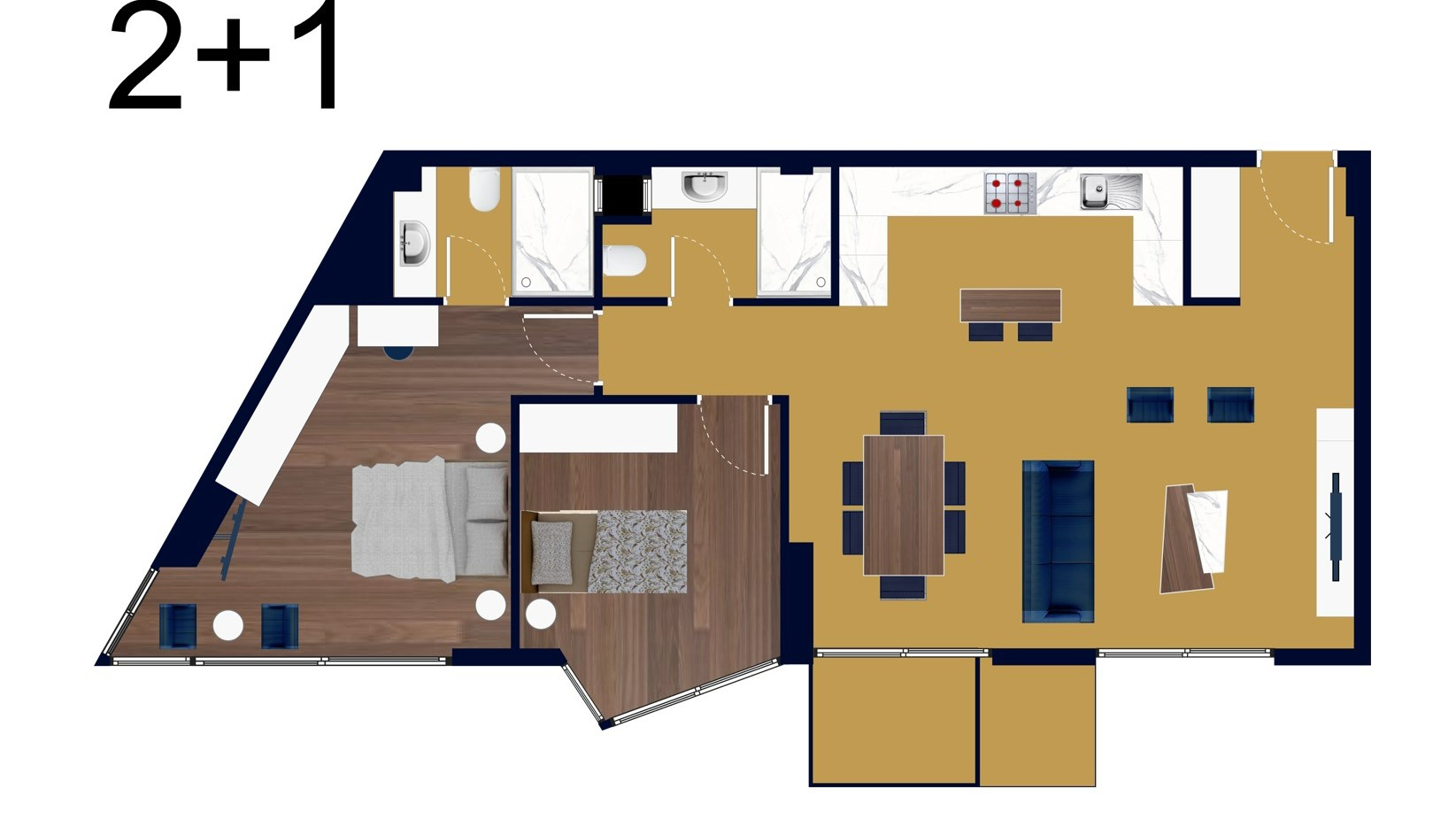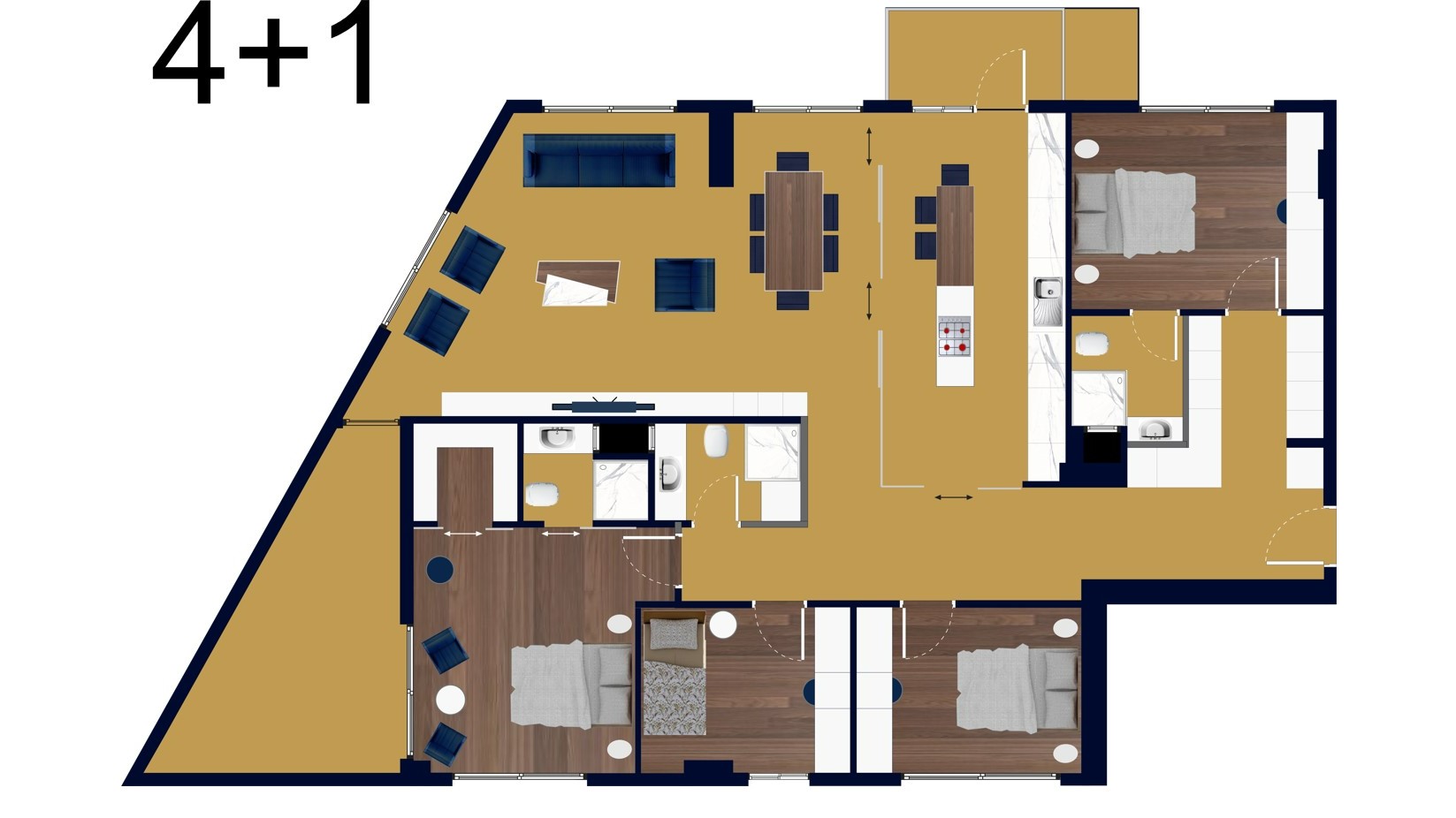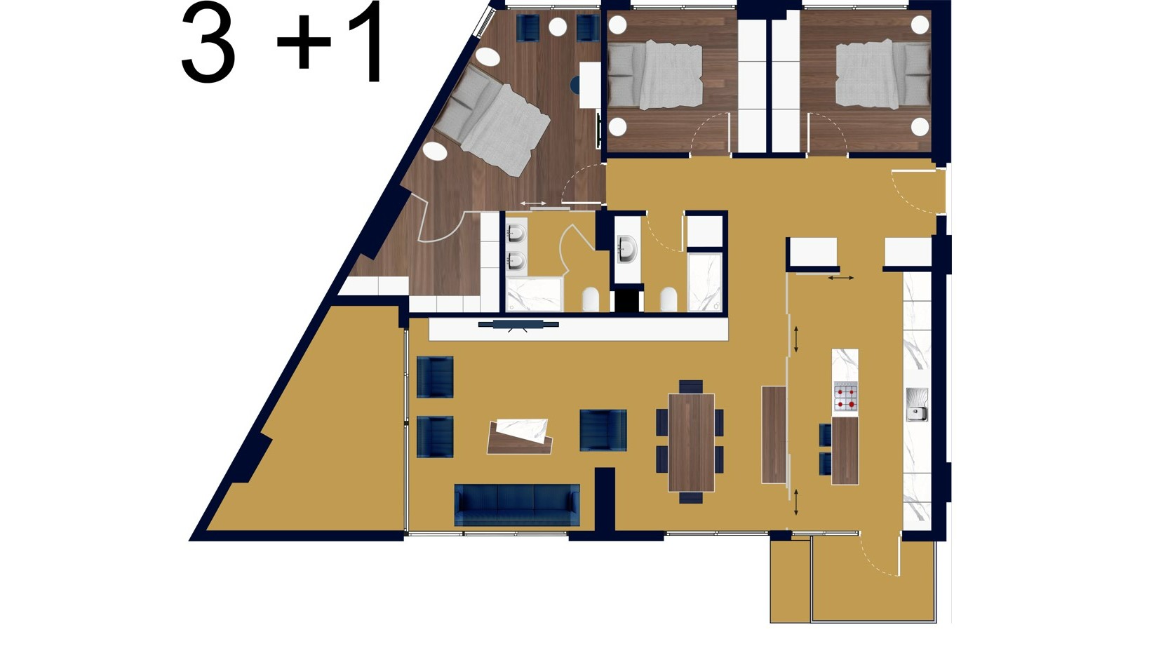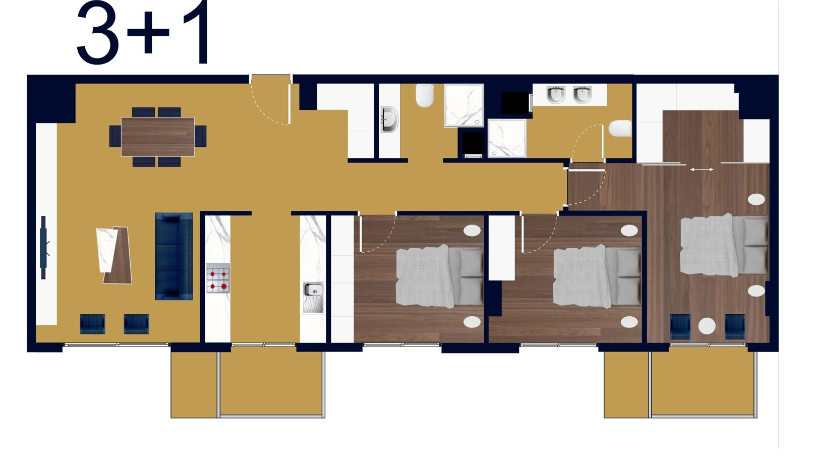 In this project, there is 3+1 studio available. The existing apartment types are designed in 17 different types in total. It can respond to all kinds of requests with these different alternatives.