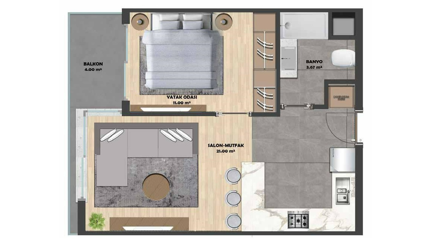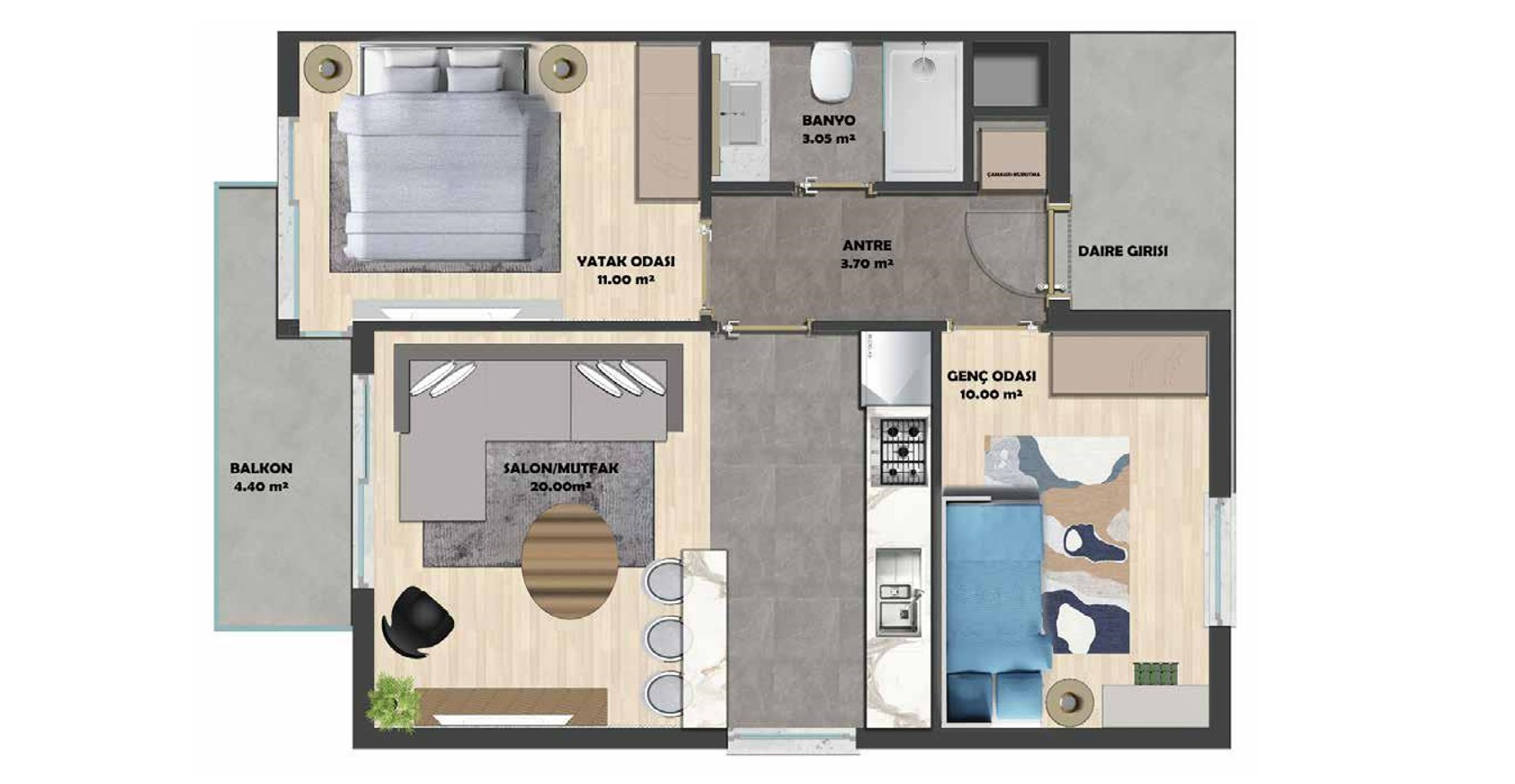 High-quality finishings and furnishings ensure that the properties in Antalya, Aksu, can suit the needs of any modern household with a video intercom system, steel entrance doors, cloakroom, automatic shutters, built-in kitchen & bathroom furniture, double glazed PVC windows, and LED lighting system.