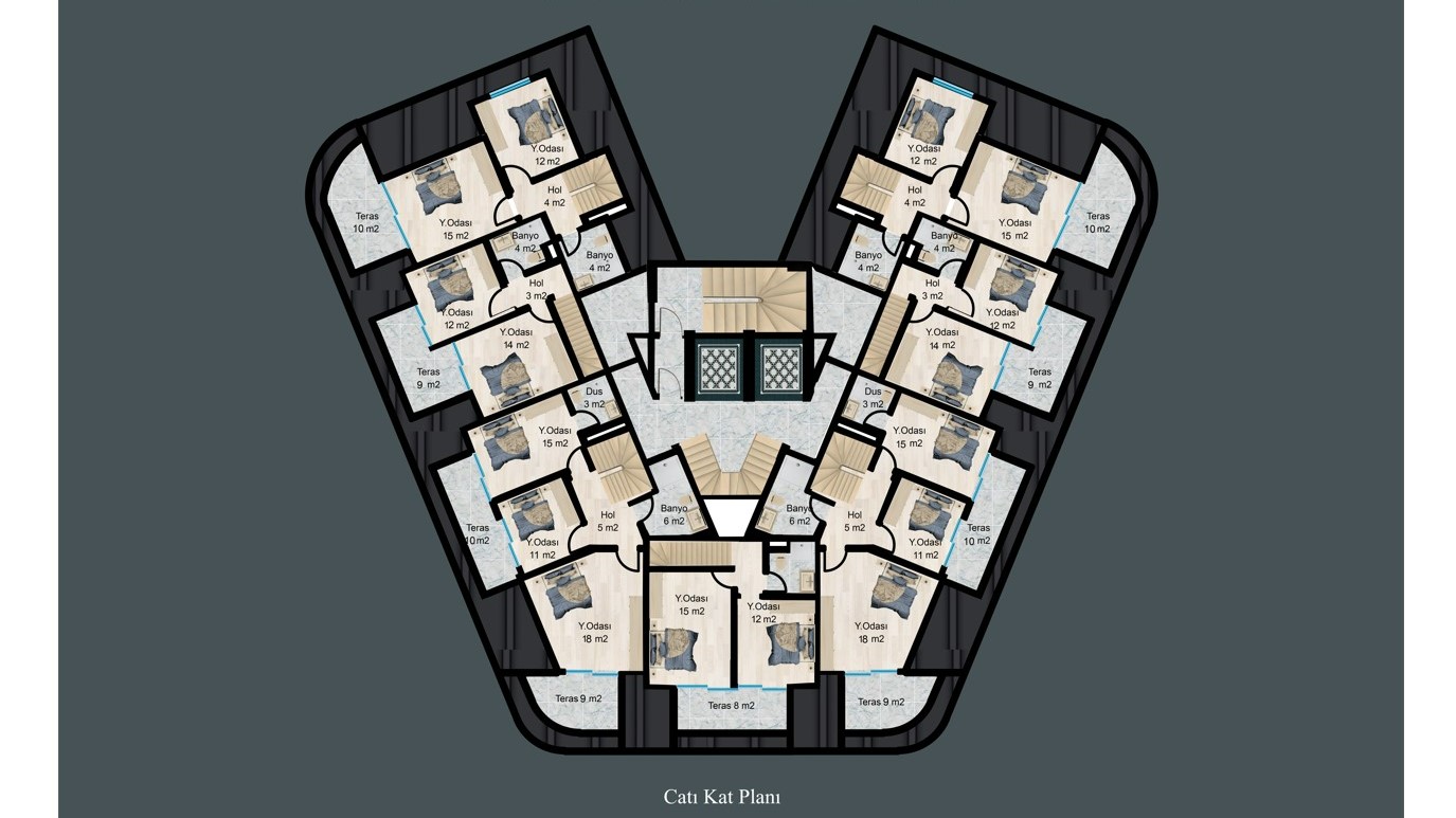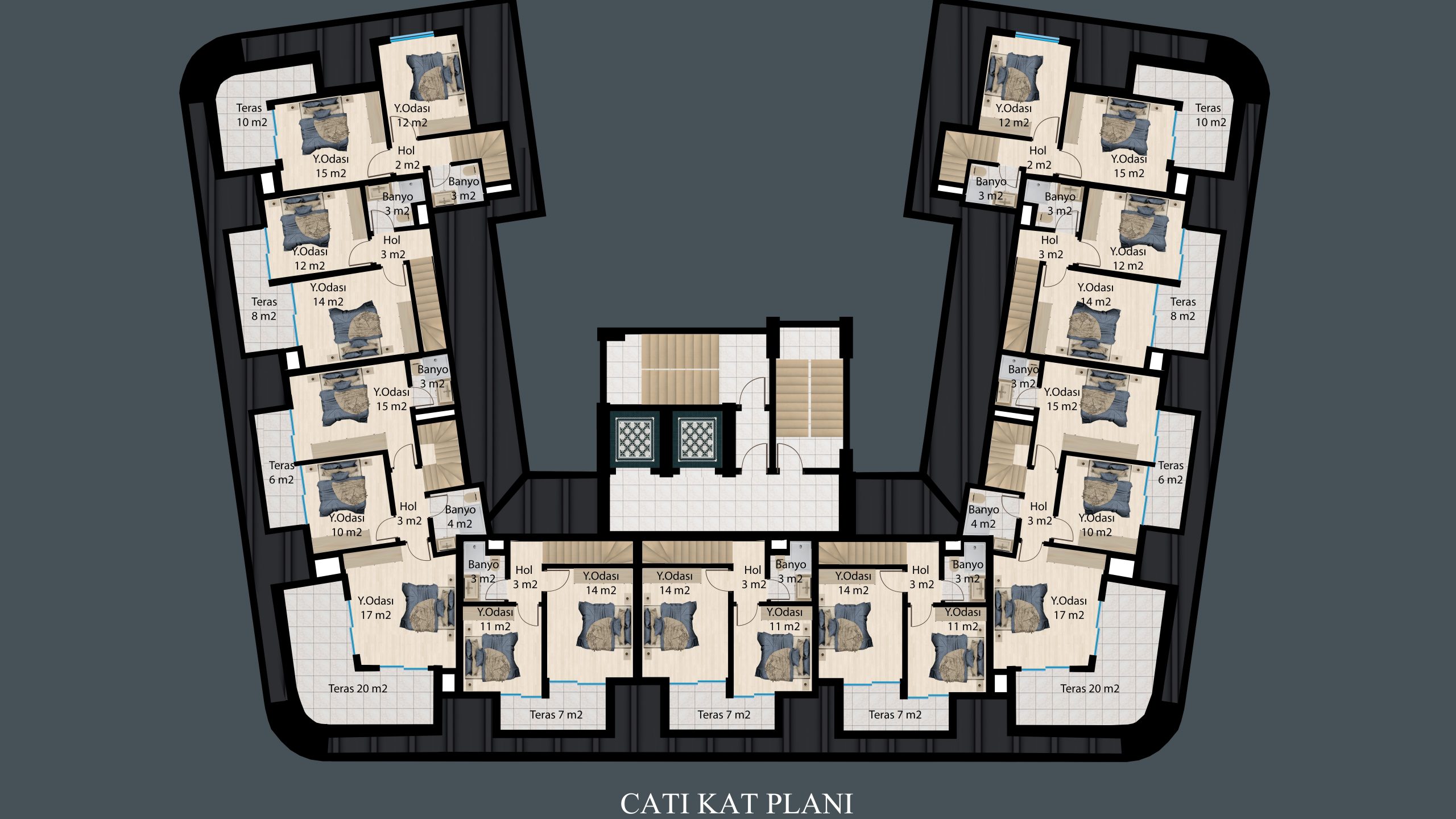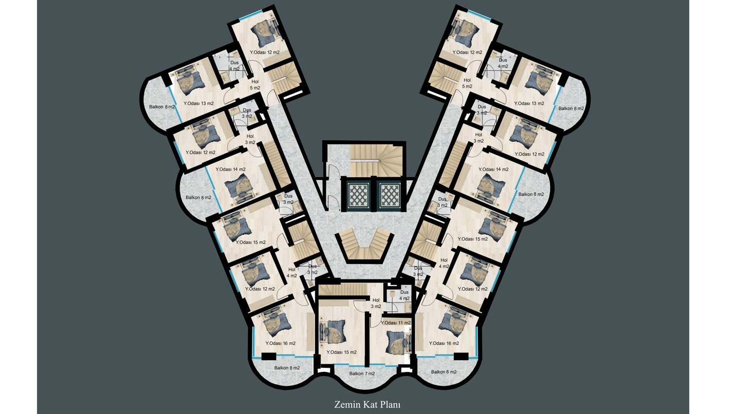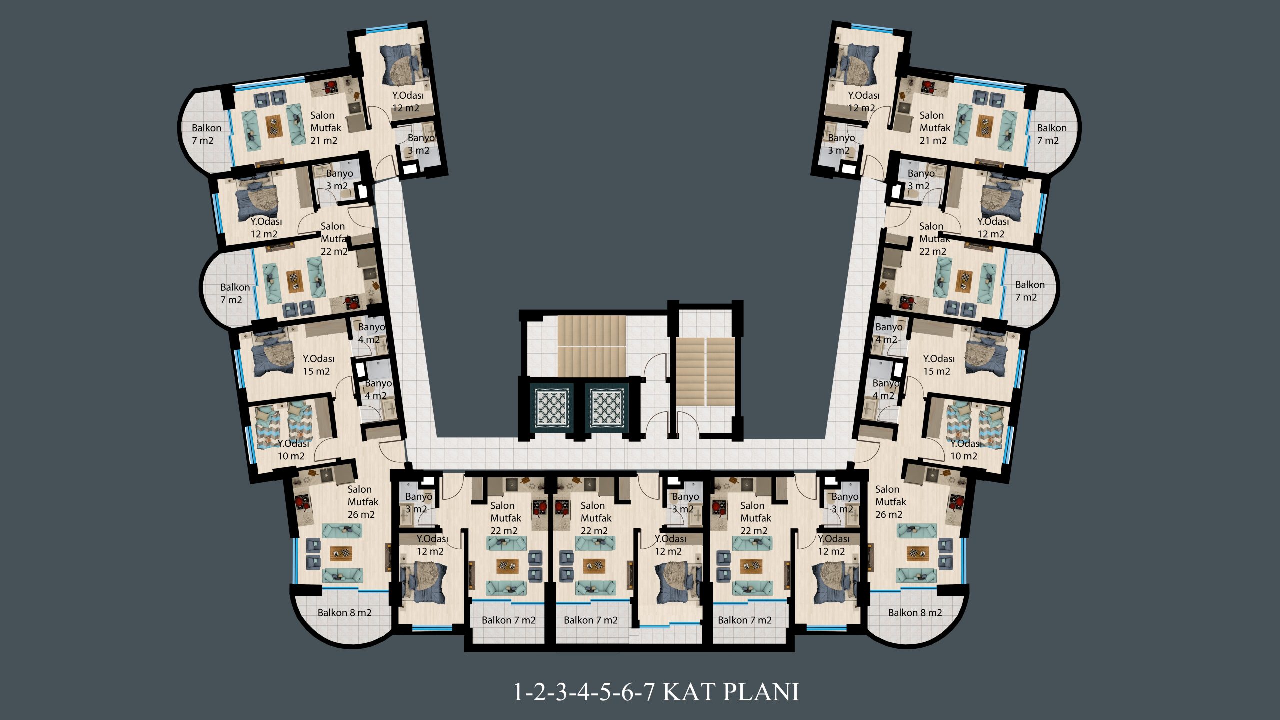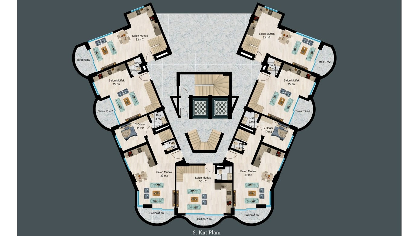 The prestigious apartments in Gazipaşa, Antalya, are equipped to satisfy the needs of a modern household with interior features such as a video intercom system, steel entrance doors, heat & water-resistant walls, ceramic flooring, spotlighting, Double Glazed PVC windows, central TV satellite system.