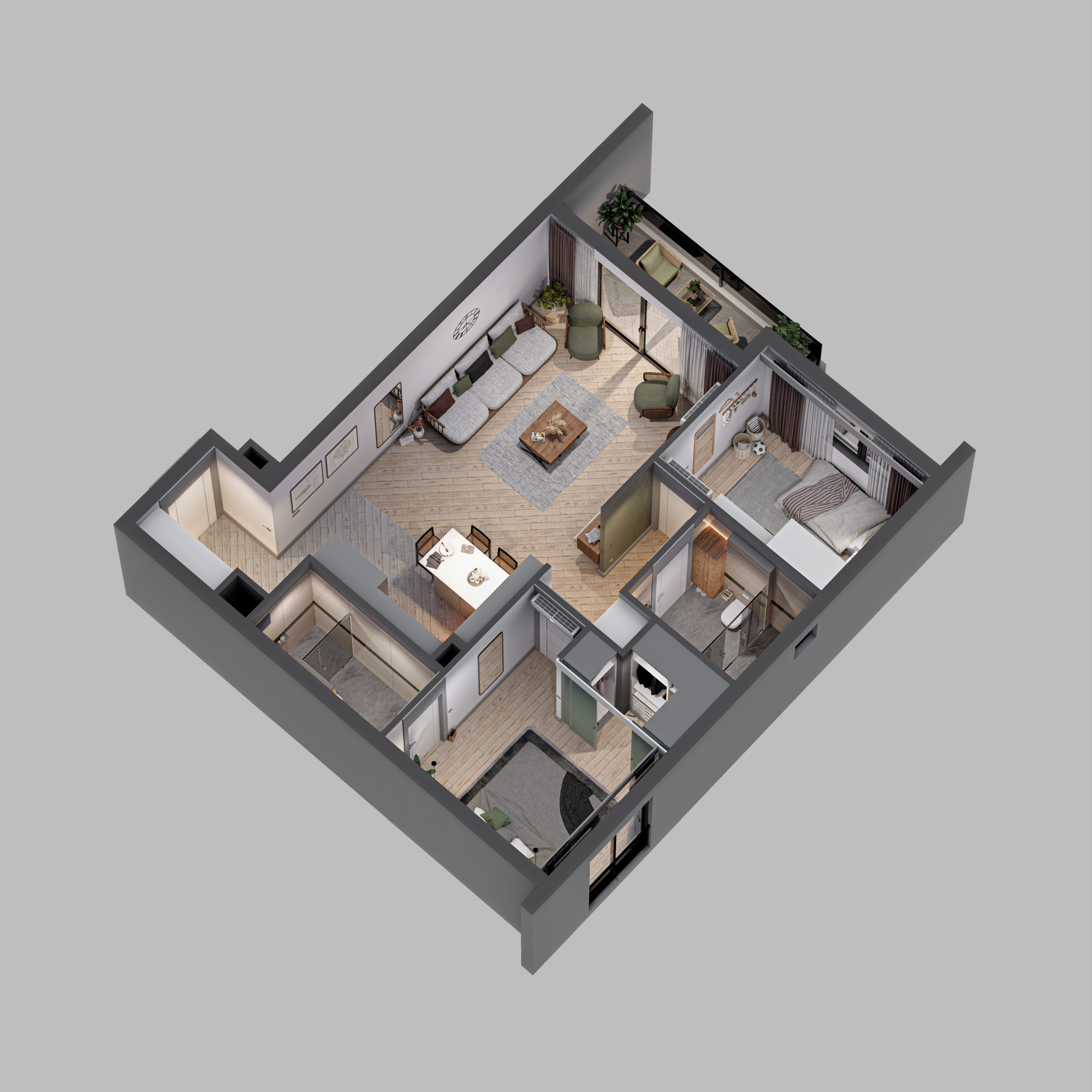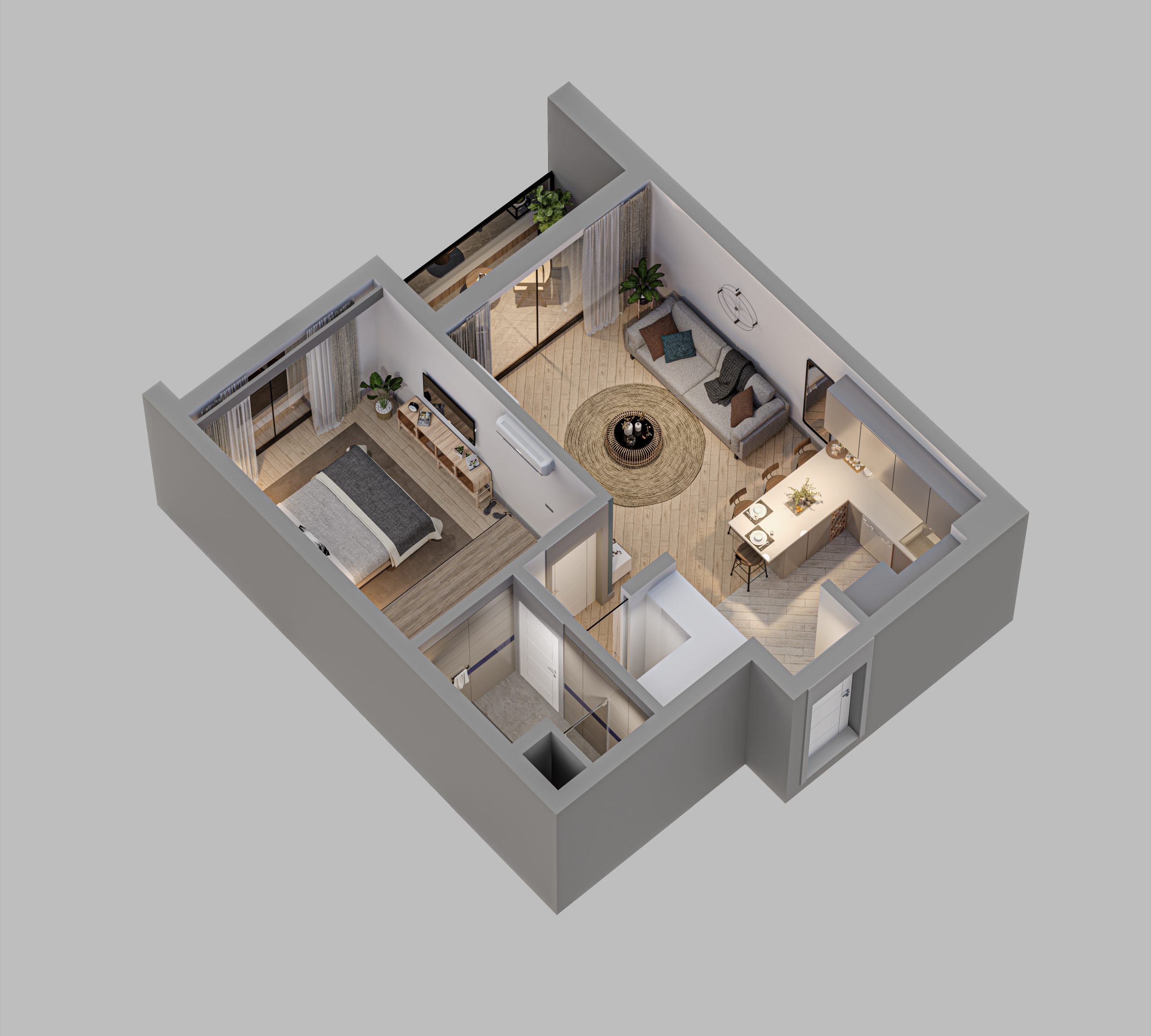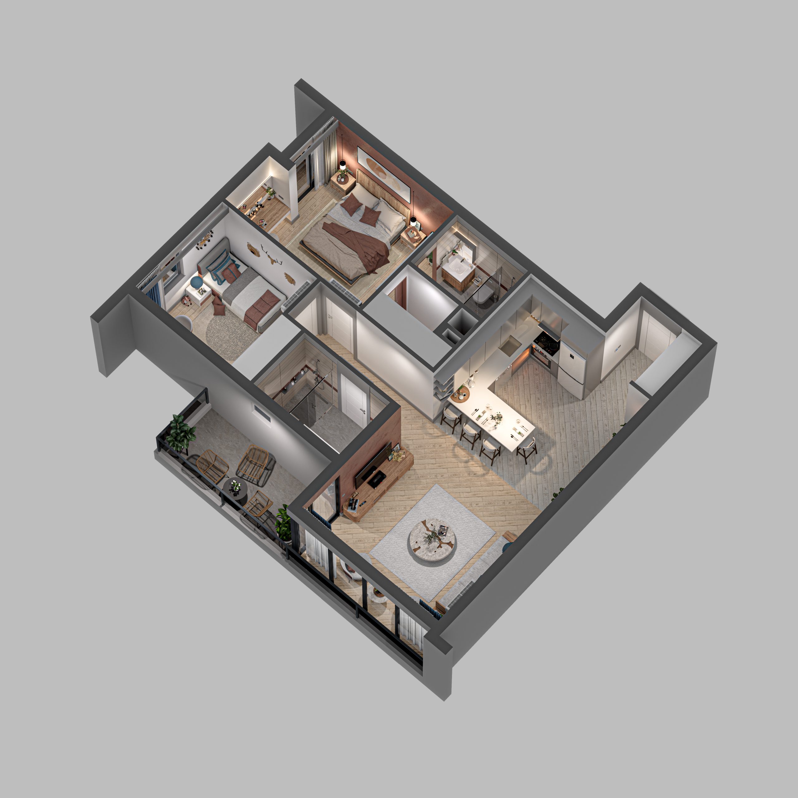 Luxury apartments in Antalya, Altıntaş are equipped with top-quality materials such as a steel door, cloakroom, kitchen appliances (Siemens), air conditionings (Mitsubishi), automatic blinds, etc.