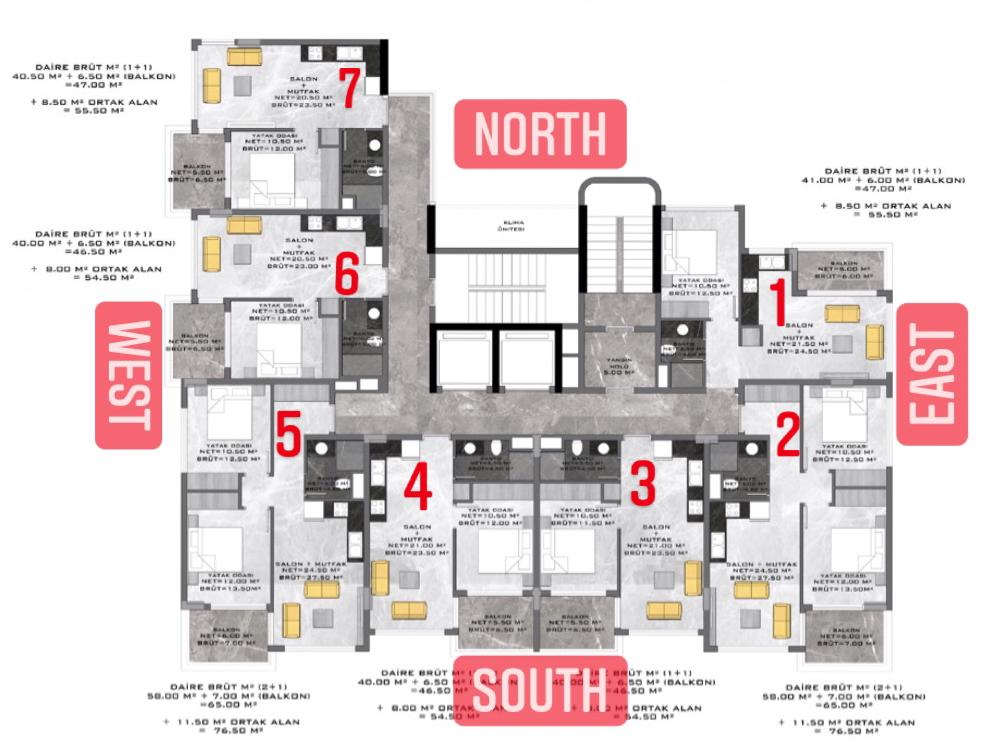 Luxury Properties in Avsallar, Alanya are close to the Incekum Forest Park, 1500 meters to the beach, 29 km to Alanya Castle, 67 km to Gazipaşa International Airport, and 100 km to Antalya International Airport.