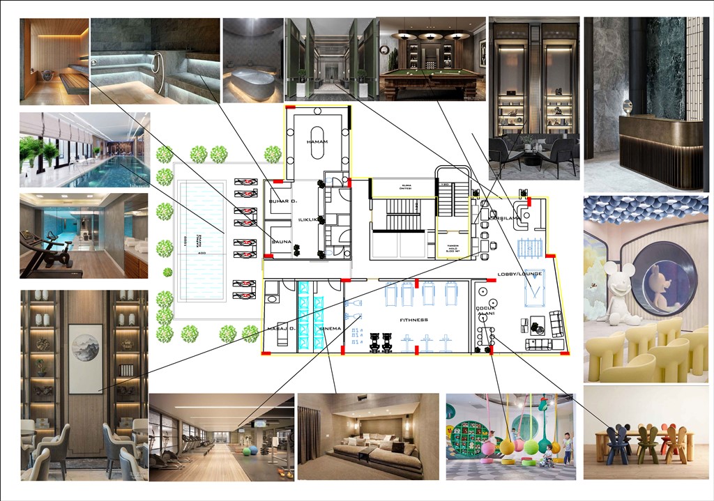 The rich facilities of this project include an outdoor swimming pool, heated indoor swimming pool, Turkish bath, sauna, steam room, relaxation room, fitness, cinema, children’s playground, game room, and barbecue area. There will be a site attendant, CCTV, on-site parking, and free Wi-Fi in social areas.