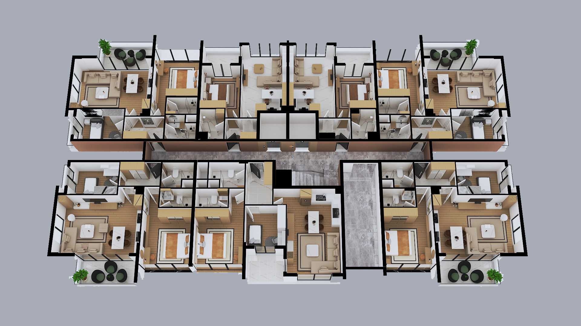 Built on a land area of 3700 m2, the project consists of a single block and a total of 42 properties. The residents of this project can benefit from communal facilities such as an elevator, an outdoor parking lot, a well-designed garden, and an outdoor swimming pool. The project also promises its residents a sheltered and private life with its privately secured entrance and exit, and 24-hour surveillance.