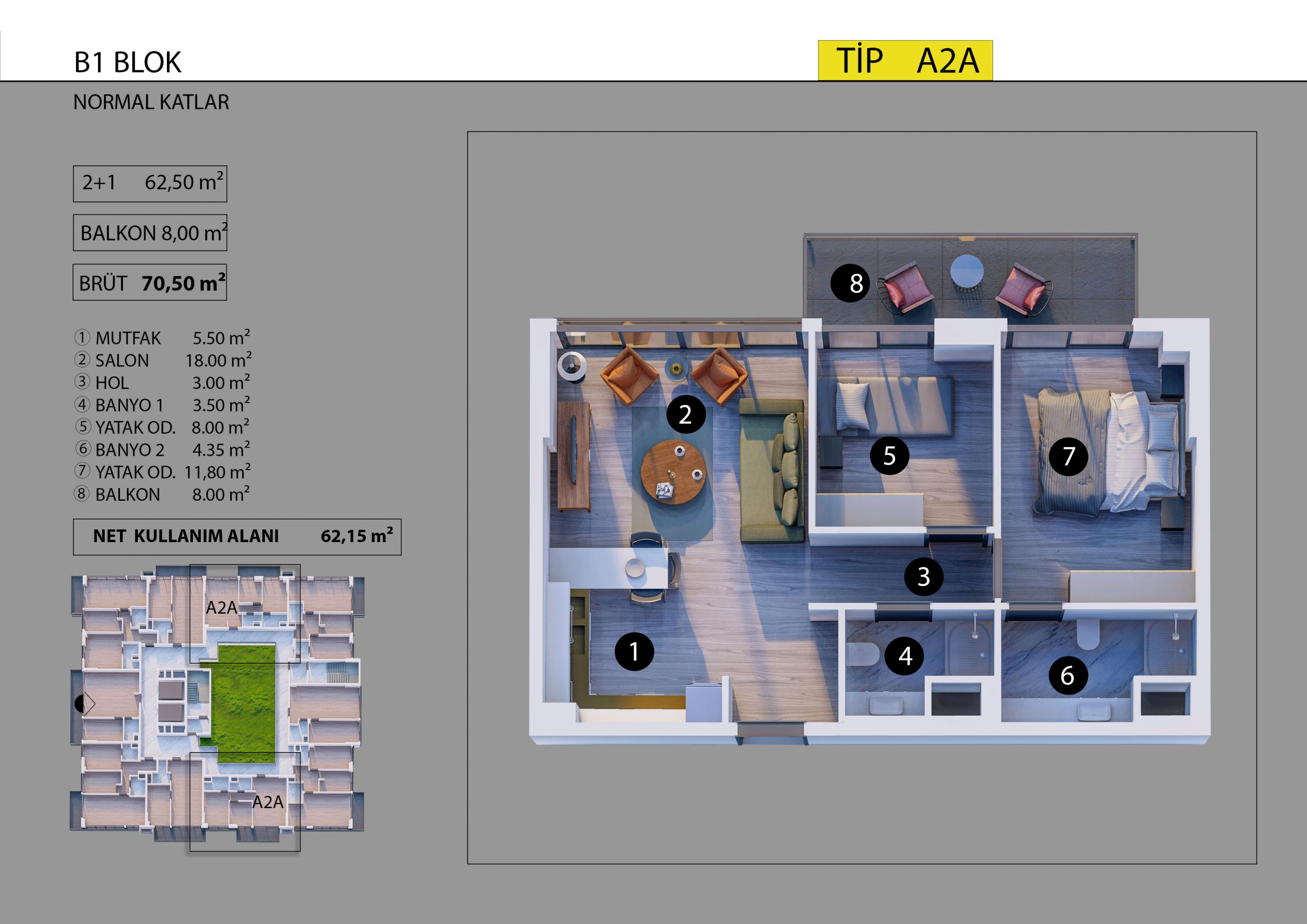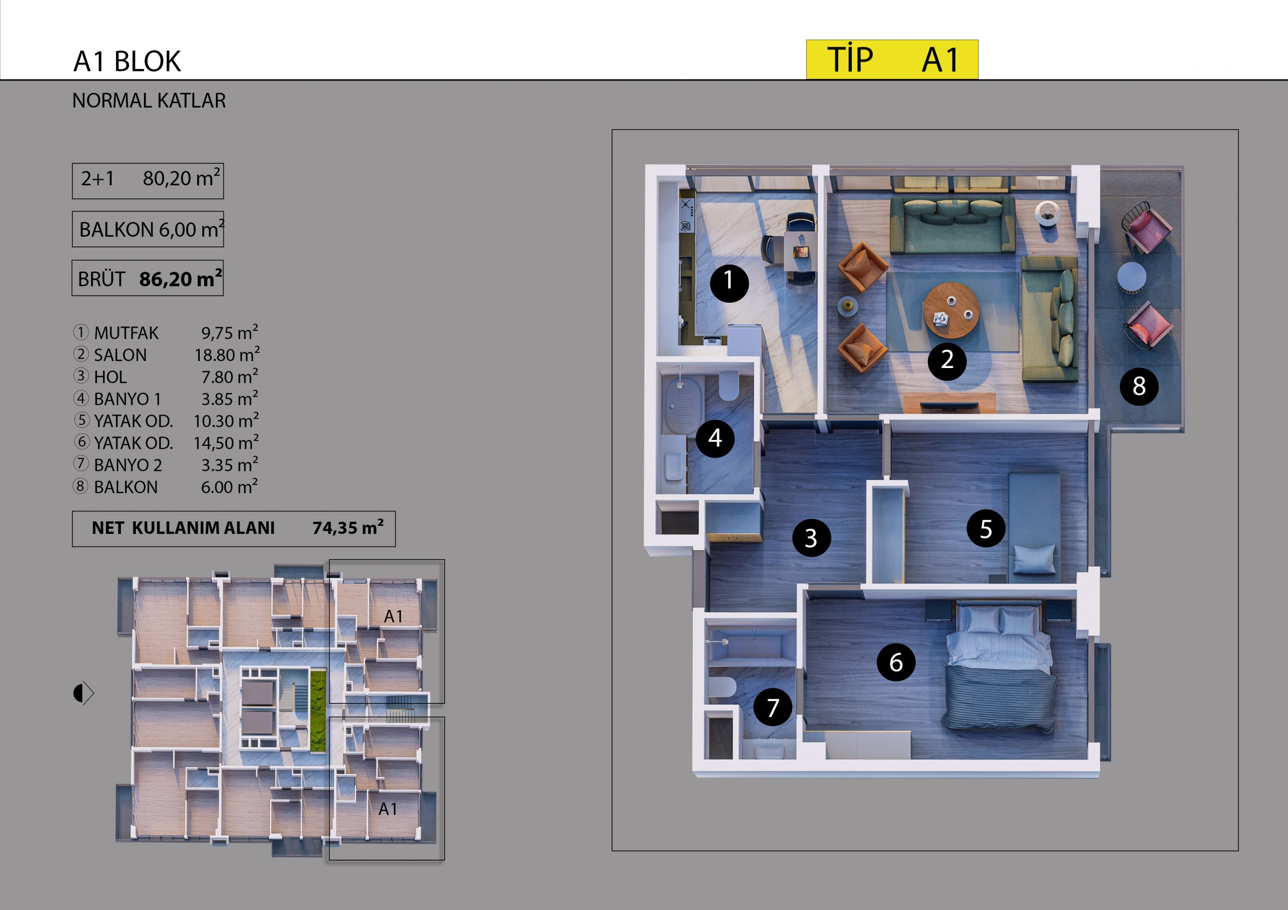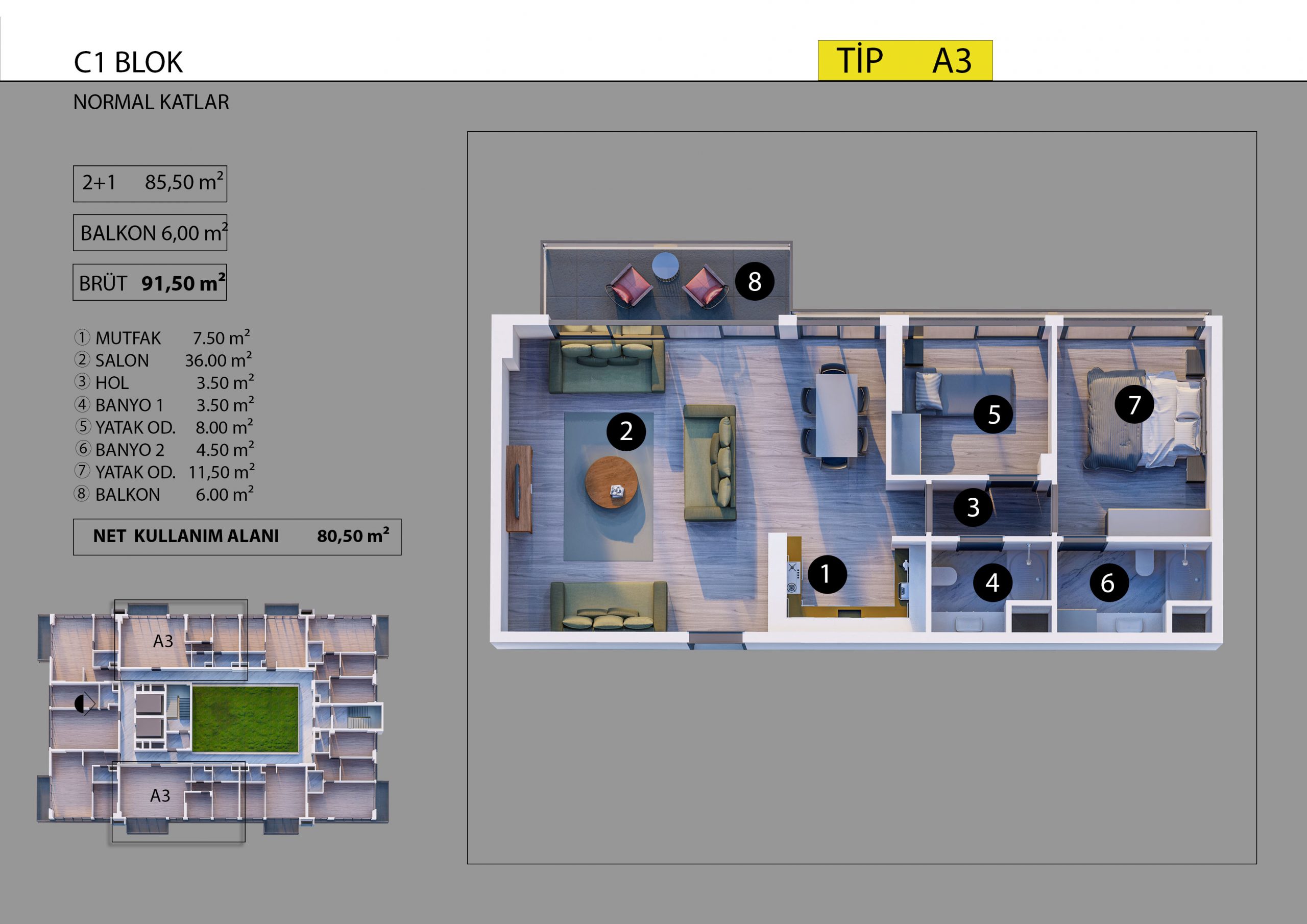 Built on a land area of 6809 m² the luxurious residential project consists of 6 blocks, 11 floors, and a total of 600 flats. Up-scale facilities offered the residents of this complex include a shuttle service to Lara beach, outdoor & indoor parking lots, outdoor & indoor swimming pools, children’s playground, well-designed garden, fitness area, sauna, steam room, 2 elevators in each block, generator, and 24/7 security & camera system.