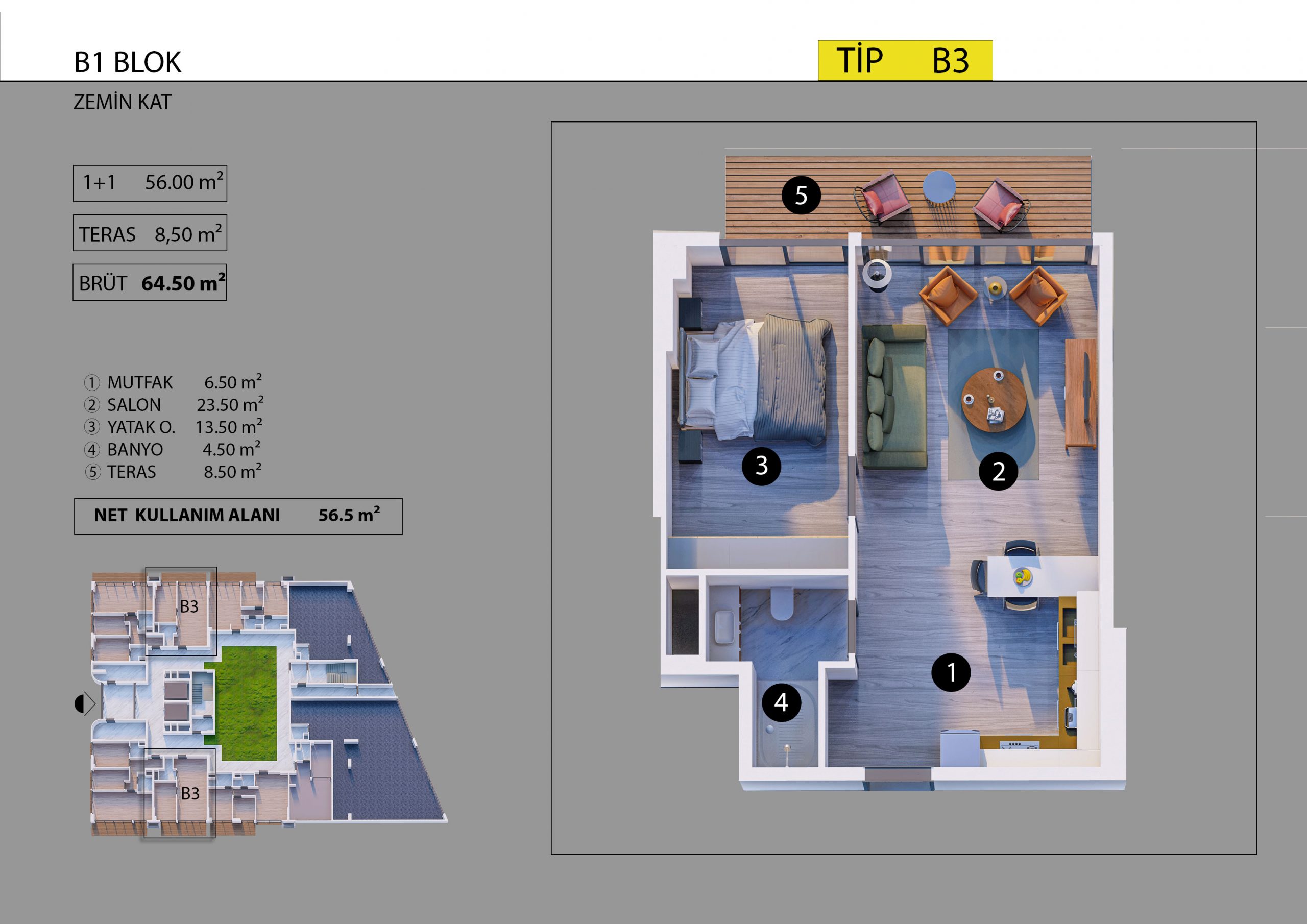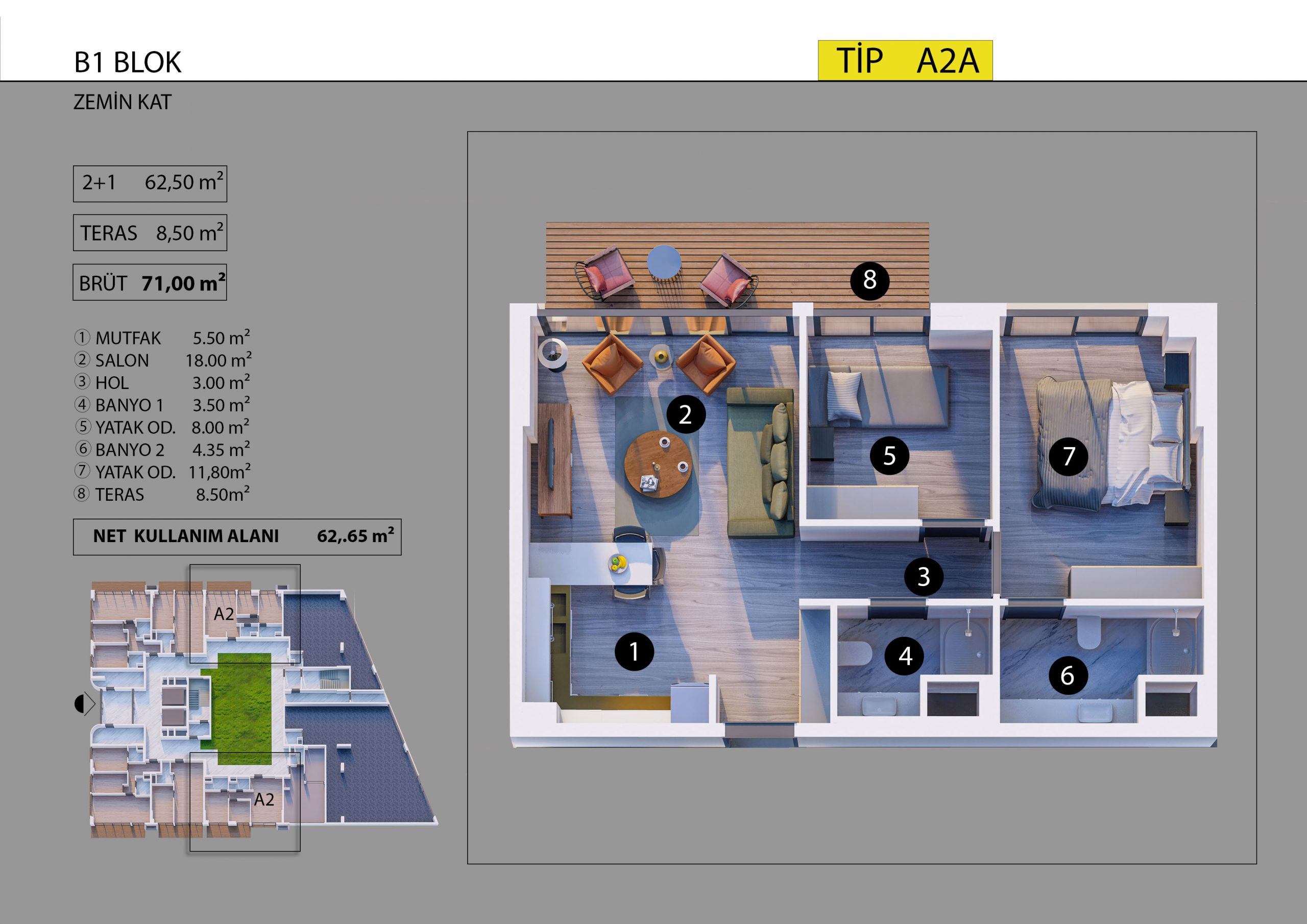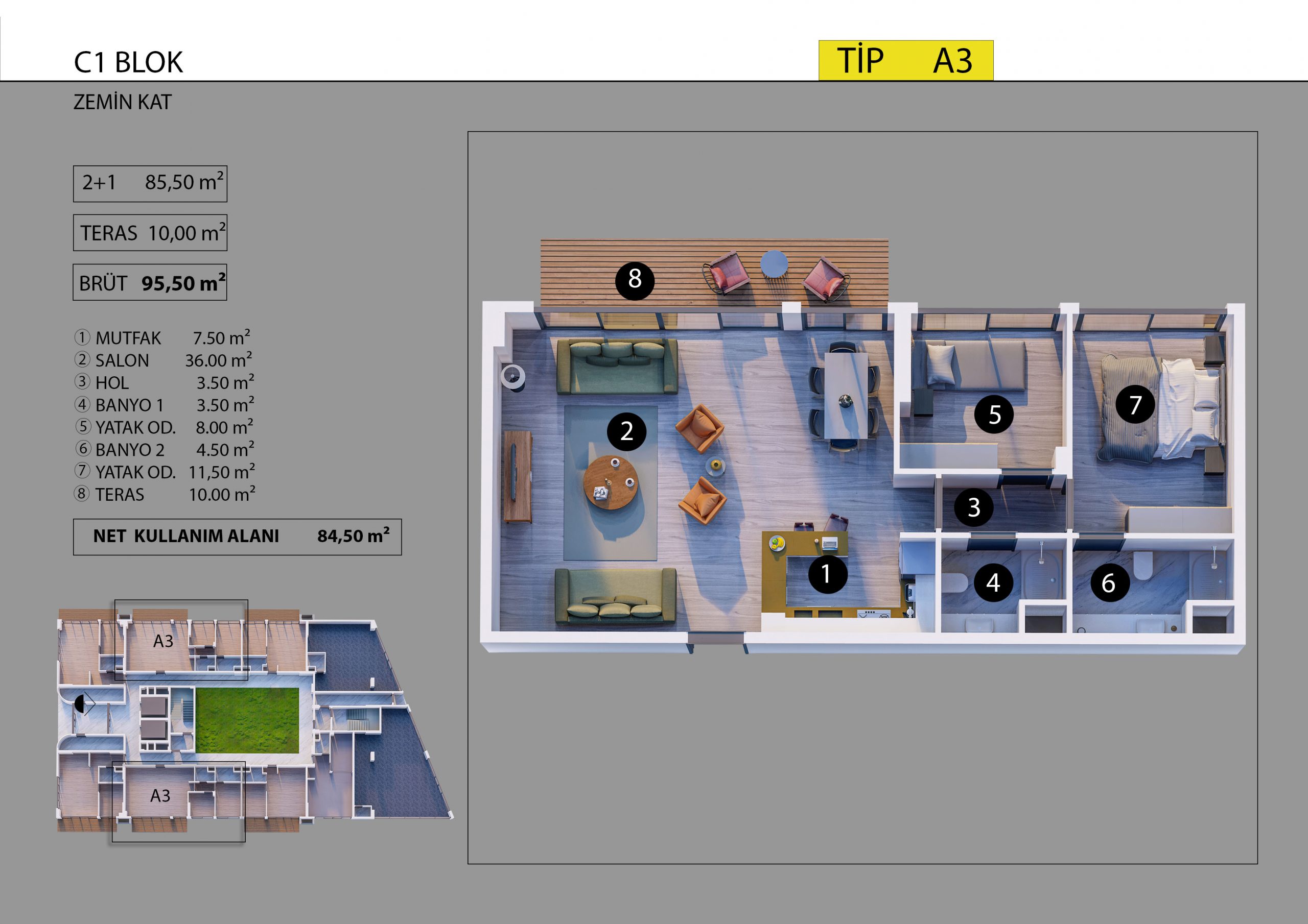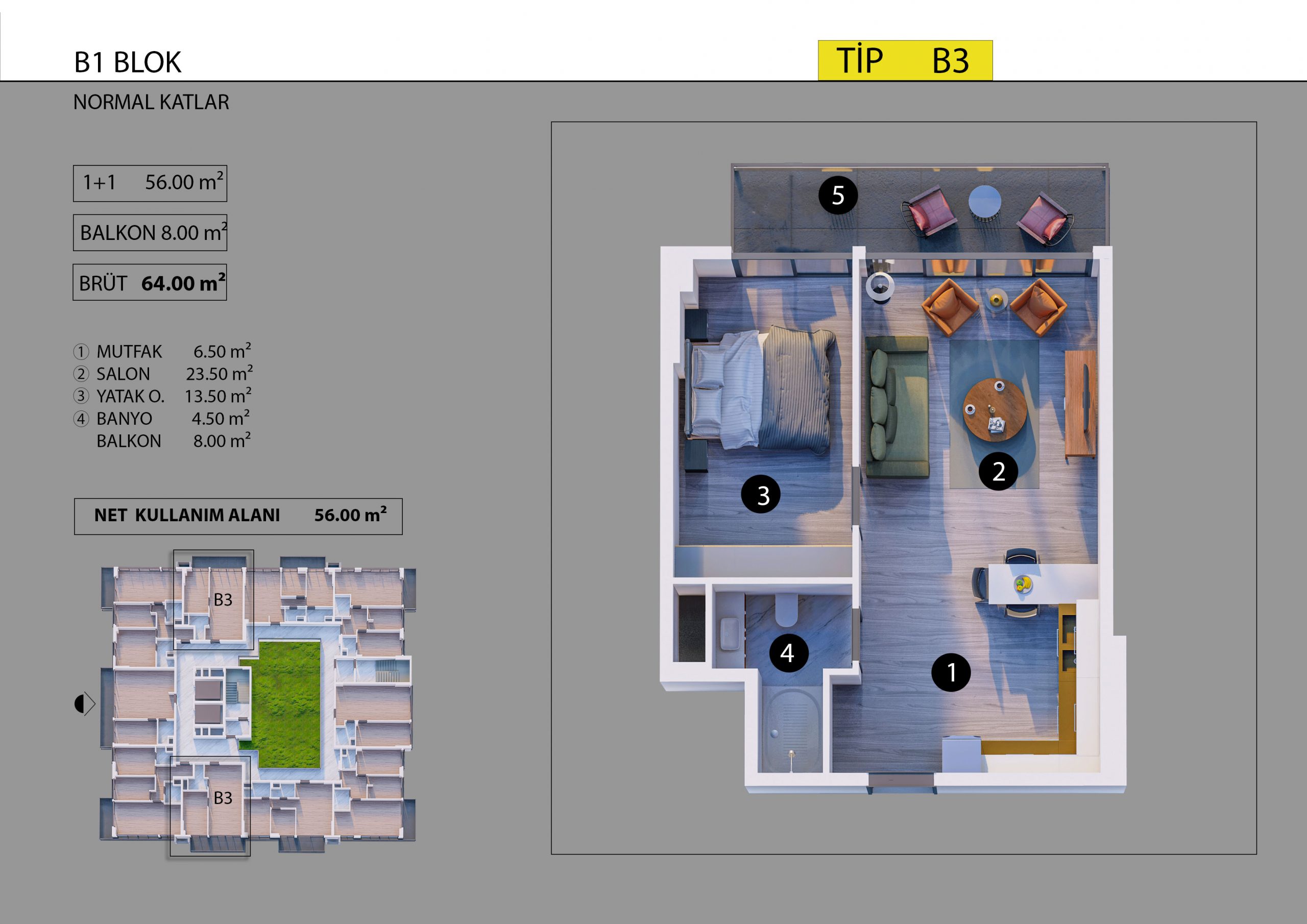 Built on a land area of 6809 m² the luxurious residential project consists of 6 blocks, 11 floors, and a total of 600 flats. Up-scale facilities offered the residents of this complex include a shuttle service to Lara beach, outdoor & indoor parking lots, outdoor & indoor swimming pools, children’s playground, well-designed garden, fitness area, sauna, steam room, 2 elevators in each block, generator, and 24/7 security & camera system.