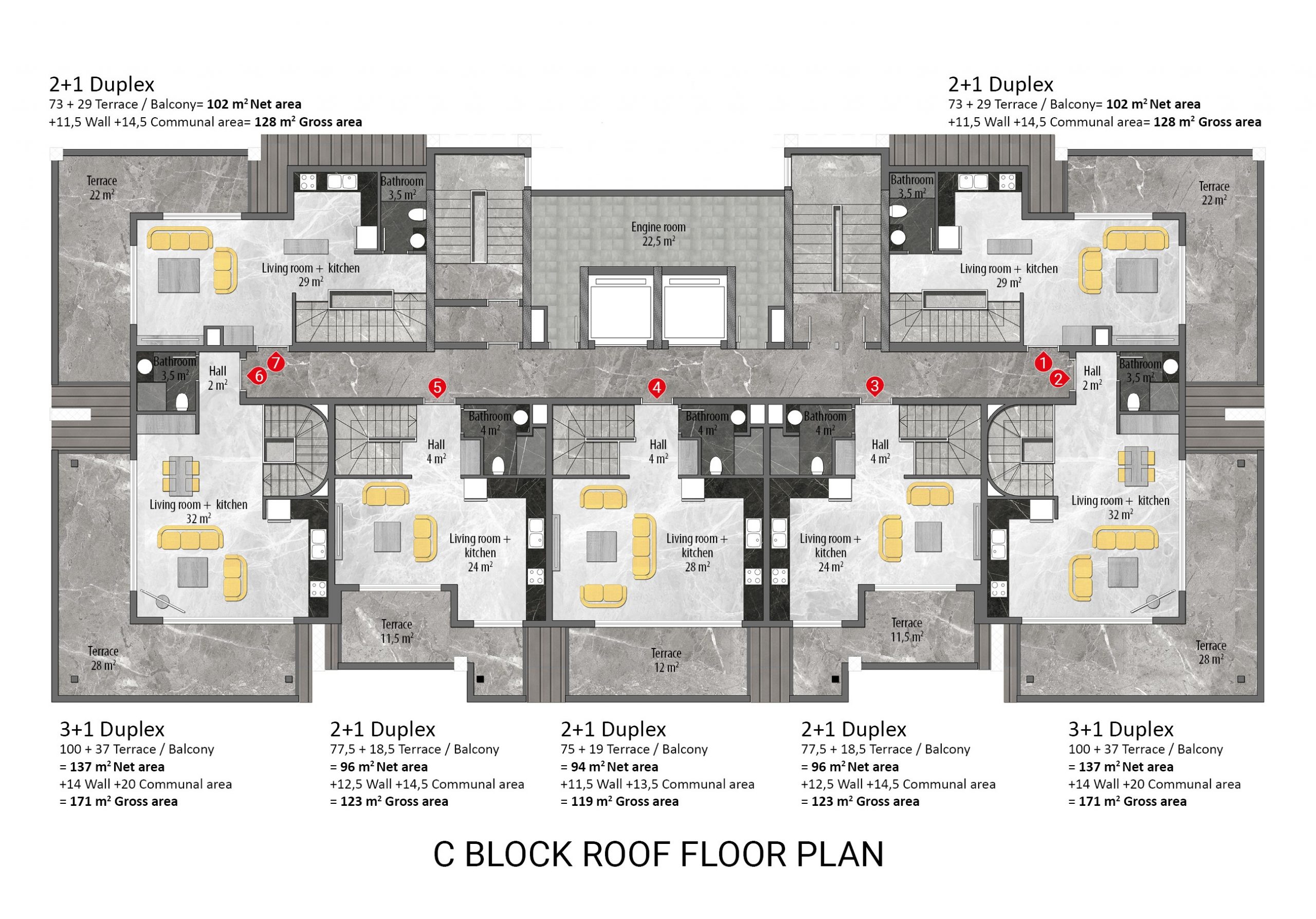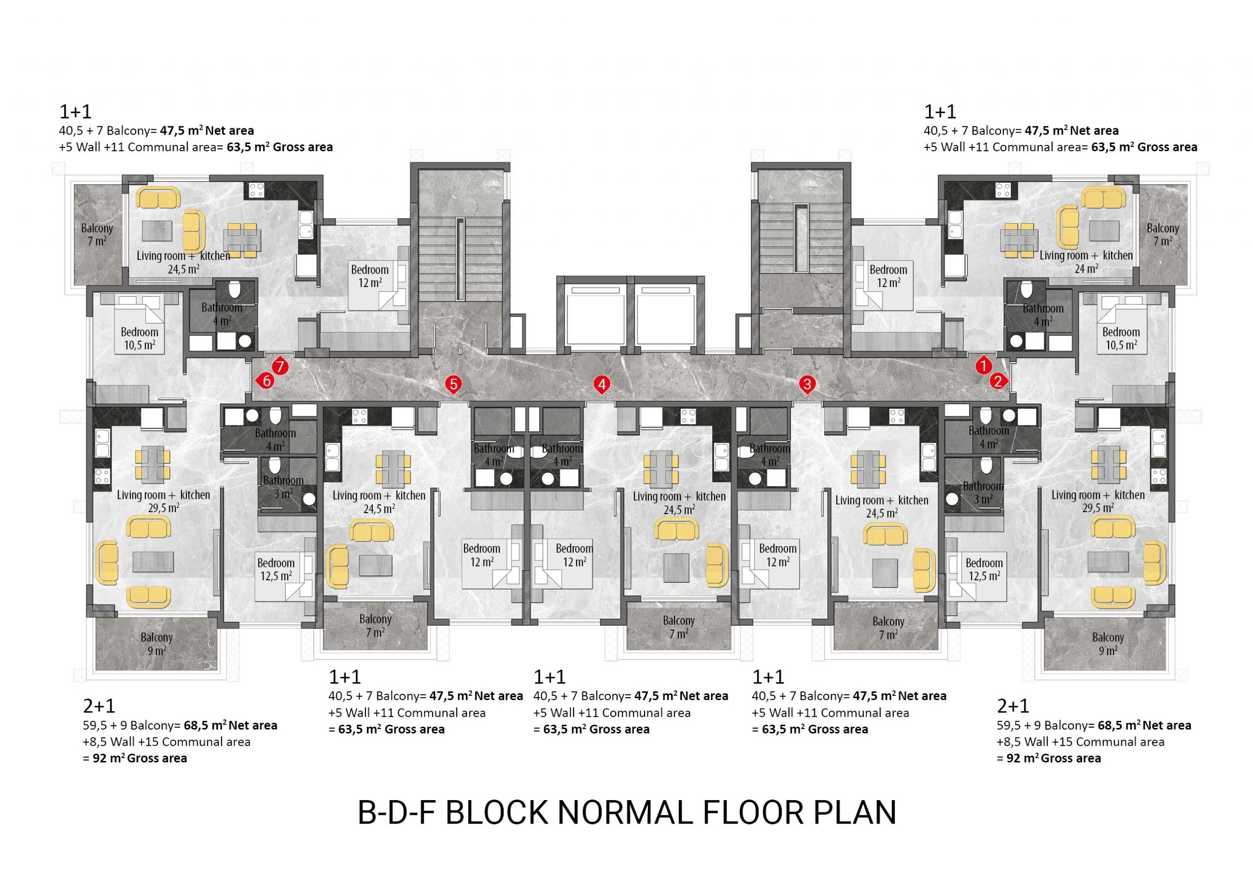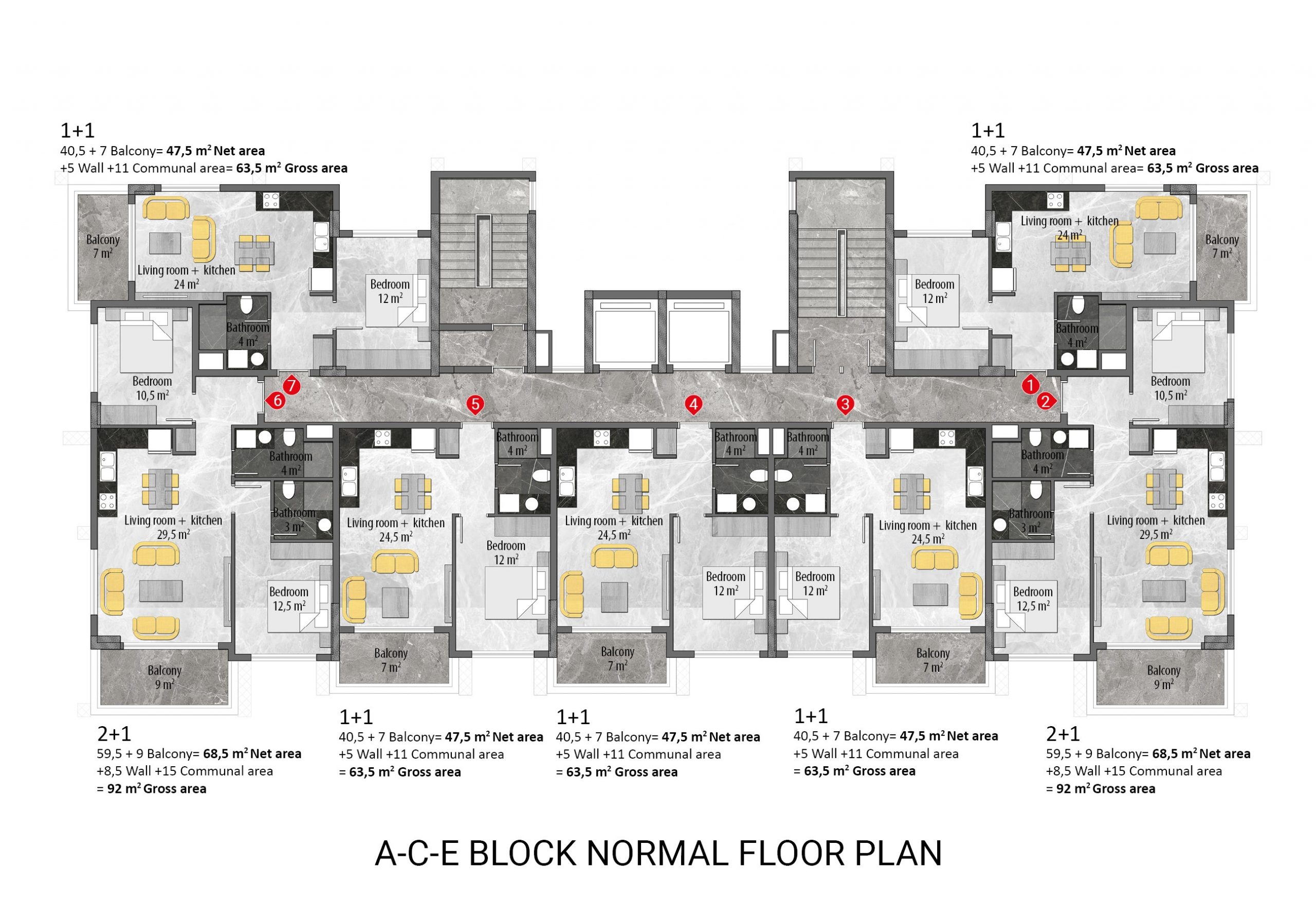 • 1+1 middle-floor apartments are 47 m².