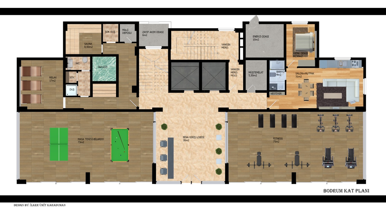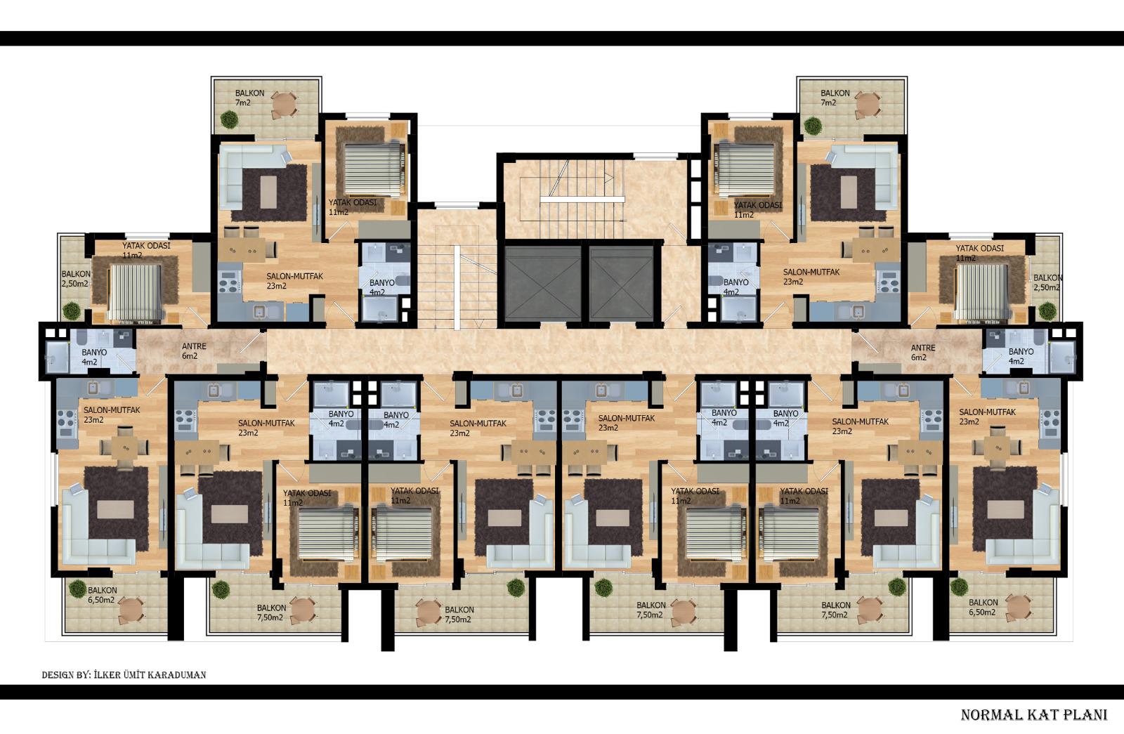Built on a land area of 2551 m², the project consists of a single block with 56 flats in total. Residents of this project can benefit from facilities such as a car parking lot, outdoor swimming pool, children’s pool, sauna, fitness area, Turkish bath, jacuzzi, children’s playground, sitting & barbeque areas, wi-fi in communal areas, elevator, generator, and 24/7 security.