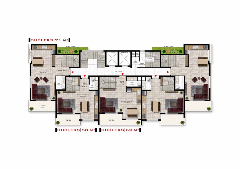 Modern apartments in Demirtaş are in a quiet location away from the traffic jam and noisy environment of the city. Alanya is 15 minutes in the west direction, and Gazipaşa is 12 minutes in the east direction. The Health Center, the building of Alanya Municipality, and the Demirtaş bazaar center are within walking distance to the north. The double highway passing 100 m south provides advantageous transportation opportunities in all directions. The apartments are only 300 meters to the beach with direct access provided by the tunnel, 300 m to the nearest market, 10 km to the hospital, 15 km to Alanya Gazipaşa Airport, 15 km to the University, 23 km to Alanya center, and 24 km to Alanya castle.