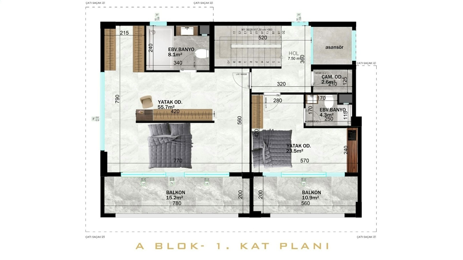 Built on a land area of 1637 m², the luxurious residential project consists of 3 detached villas. All villas boast magnificent sea, nature, Alanya castle, and city views. Each villa has its own infinity pool, covered car parking area, gym, sauna, barbeque area, sitting area, and garden. The project also provides privileged facilities such as a generator, disabled accessibility, and 24/7 security & surveillance.