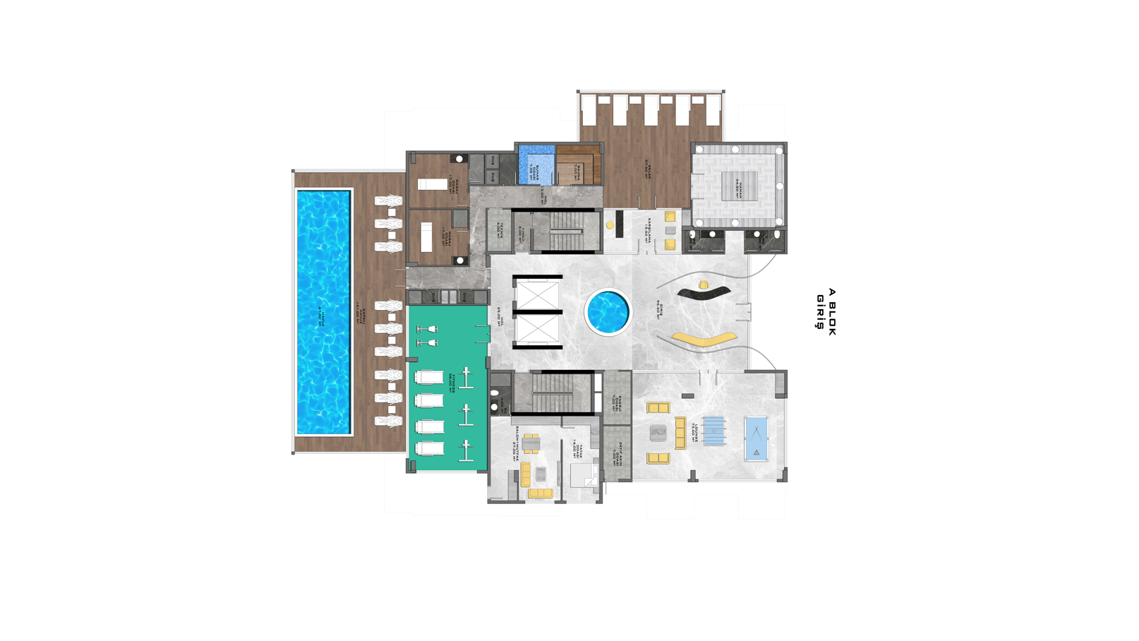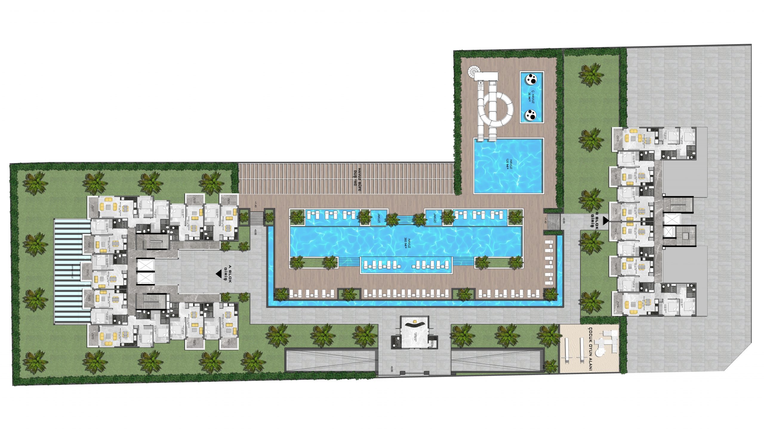 6,400 m² alan üzerinde 2 bloktan oluşan site içinde kapalı otopark alanı, açık ve kapalı oyun parkı, bilardo, masa tenisi, sinema, golf simülasyon odası, yüzme havuzu, aquapark, çocuk havuzu, havuz bar, ısıtmalı kapalı yüzme havuzu, Türk hamamı, buhar odası, Fin saunası, masaj odaları, dinlenme alanları, fitness salonu, yoga & pilates ve barbekü alanı bulunmaktadır. Teknik özellikler arasında ise antibakteriyel dış cephe kaplaması, birinci sınıf ses, ısı ve su yalıtımları, geniş asansörler, yangın önleme sistemi, merkezi uydu sistemi, jeneratör, 7/24 güvenlik kamera sistemi ve güvenlik bulunmaktadır.